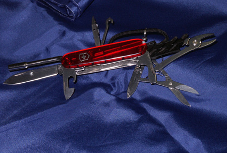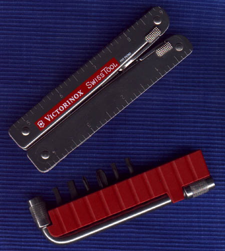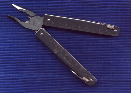 Cybertool Das Victorinox Cybertool ist mein erstes echtes Schweizermesser (wenn man das Swisstool vorlässt). Von dem Teil bin ich echt begeistert, ist deutlich kleiner und handlicher wie Swisstool oder Leatherman, jedoch nicht weniger alltagstauglich. Das Etui für das Messer hab ich mir aus schwarzem Rolladengurt selbst genäht ;-)